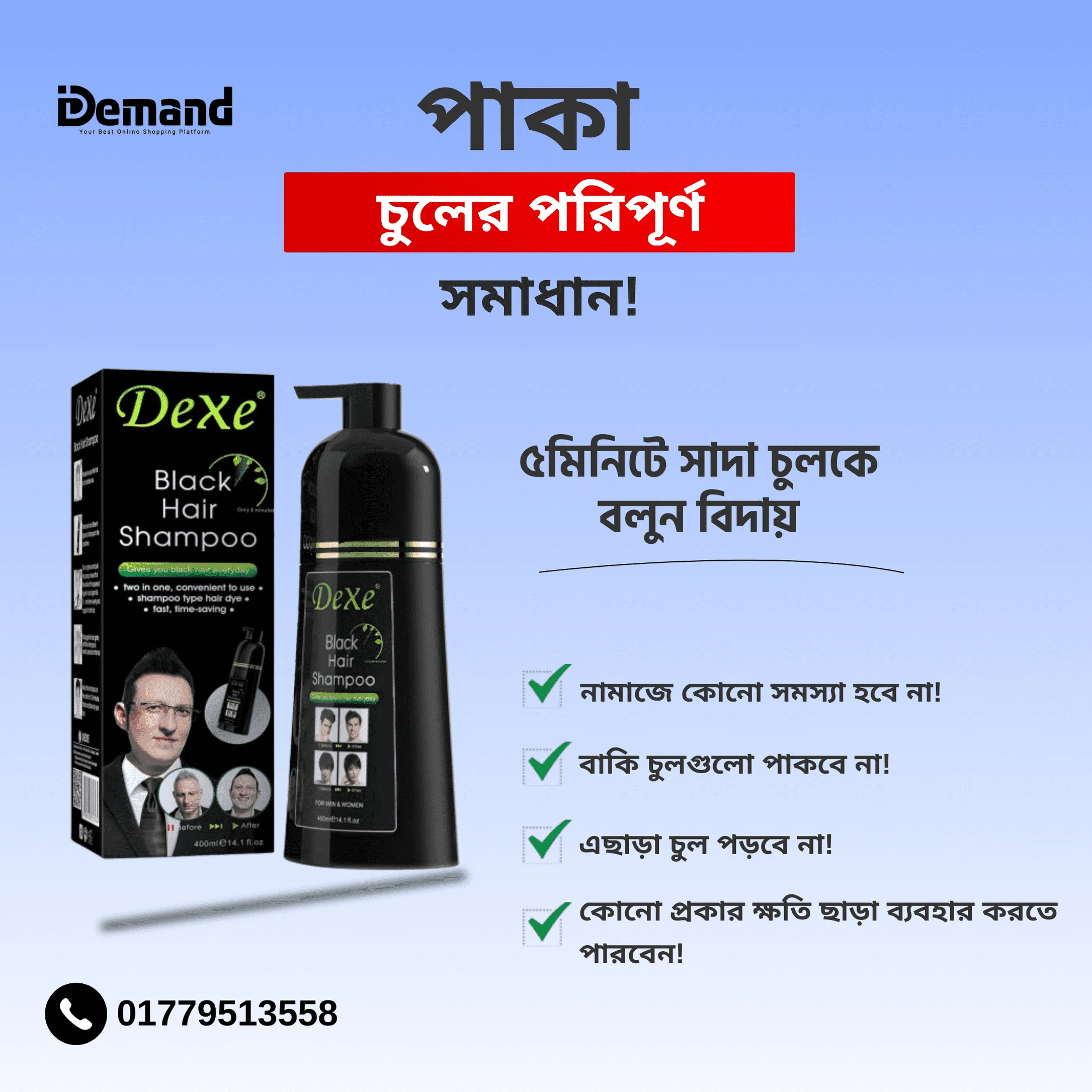 সাদা চুলের সমস্যা ৫ মিনিটে দূর হবে Dexe Black Hair Shampoo ব্যবহারে